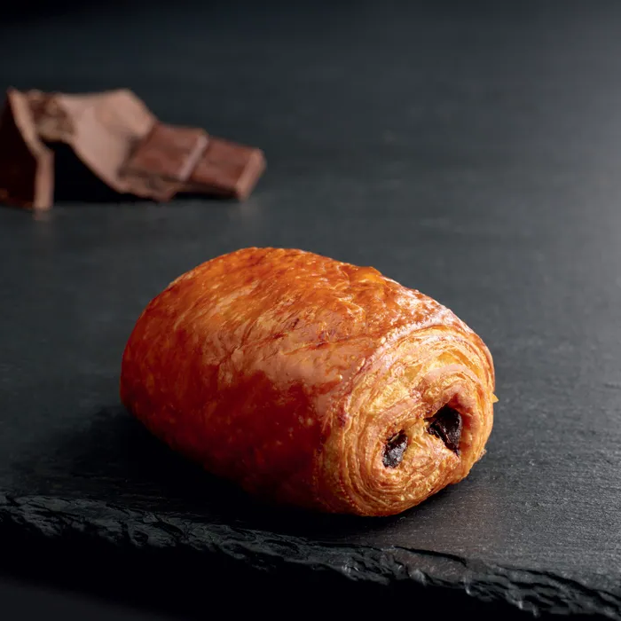 Notre pain au chocolat, aussi appelé chocolatine, associe un feuilletage léger et croustillant à de généreuses barres de chocolat fondant.